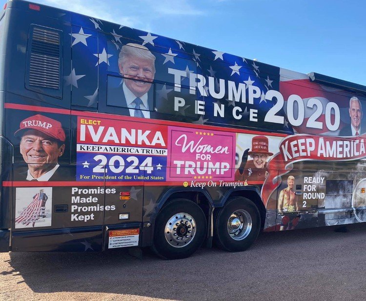 Снимок красуется на автобусе, который колесит по США, войдя в состав «Поезда Трампа».