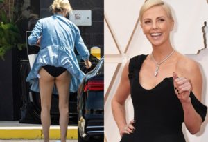 Звезда уже было направилась к своему автомобилю, однако внезапно налетевший ветер заставил ее показать то что скрыто: приподняв подол платья он обнажил ее крепкую пятую точку в аккуратном белье.