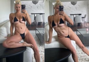 В этот раз девушка натянула – и не без труда – маленький черный купальник и выложила на всеобщее обозрение фото, специально отметив, что никакой обработки не проводилось.