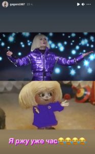 Сходство певицы с мультяшным персонажем изрядно повеселило аудиторию, а сама Гагарина смеялась вместе со всеми, подписав картинку: «Я ржу уже час».