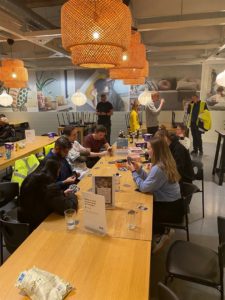 Вся компания наслаждалась рождественским фильмом и футбольным матчем Ливерпуль-Эвертон, показанным персоналом магазина на большом проекторе.