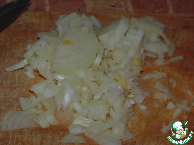 Маленькую головку репчатого лука почистить и мелко порезать.