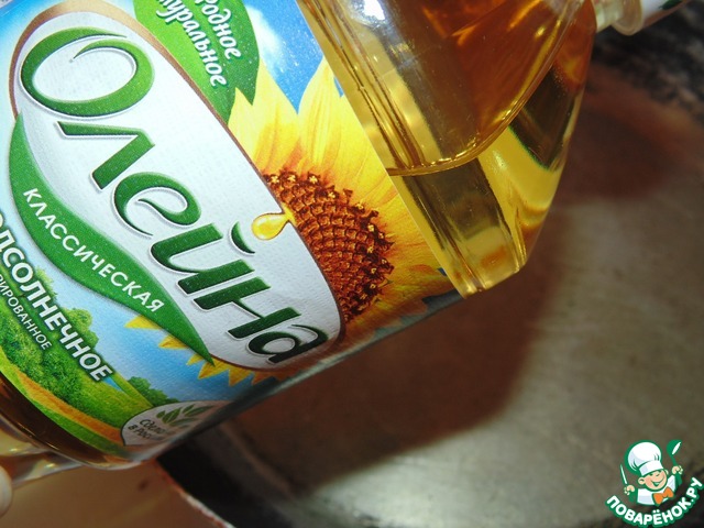 В сковородку налить растительное масло Олейна. И обжарить лук до прозрачности.