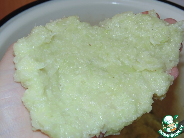 Одну столовую ложку капустного фарша выложить на руку и сформировать лепешку.