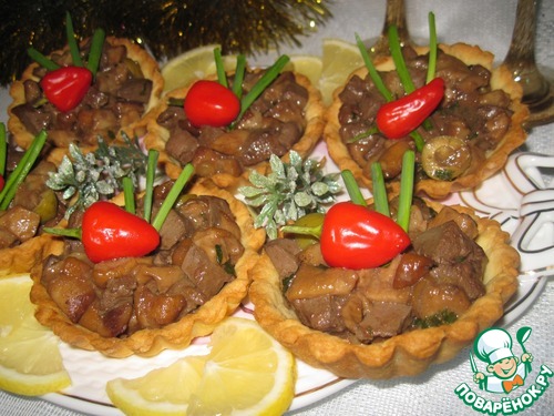 Тарталетки с салатом из печени и грибов