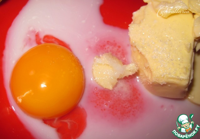 Мягкое сливочное масло, желток, сахар, молоко, соль растереть в однородную массу.