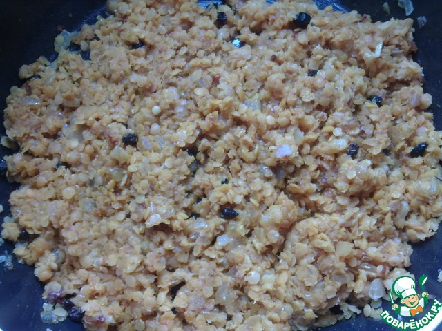 Теперь добавить вареную чечевицу, перемешать и тушить на медленном огне 10 минут.