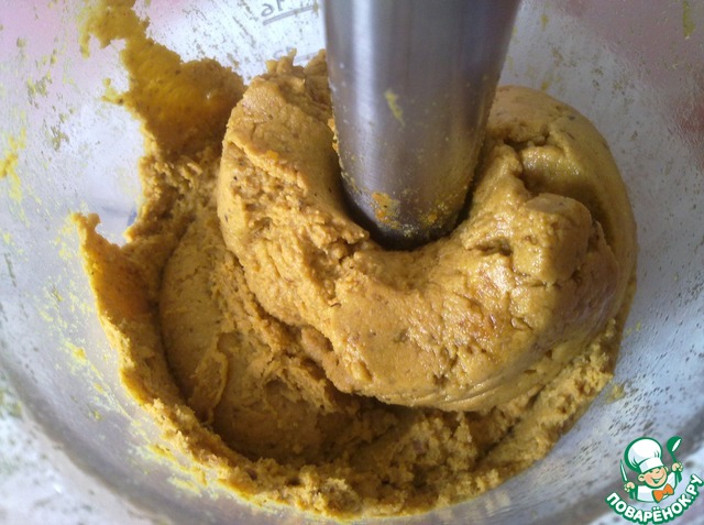 Добавьте смесь чечевицы с луком и специями к измельченным орехам. Всю массу пробить ручным блендером в однородную пасту.