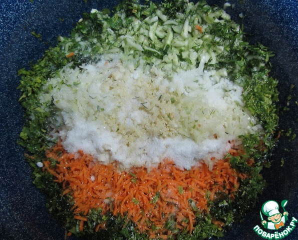Все овощи складываем в таз, добавляем соль и кислоту.