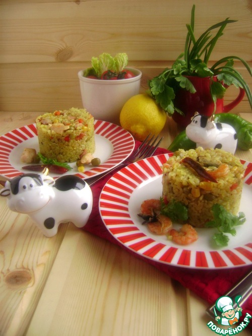 | Я не была в Испании и не ела настоящей паэльи. И, даже пролистав интернет, я не все могу купить в нашем городе. Но я очень люблю рис, и то, что получается из того, что есть, вкусно и ярко! Интересная альтернатива обычному плову, поле для экспериментов, новая нотка знакомого риса. Моя семья ест с удовольствием! |
