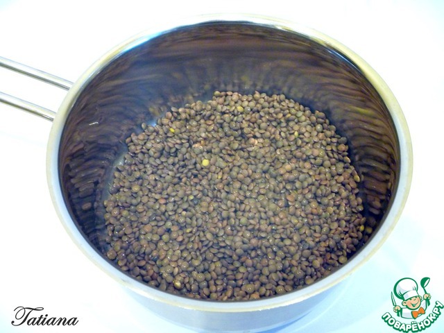 Приготовьте чечевицу согласно указаниям на упаковке (промытая пестрая чечевица Пардина 1 чашка+2 чашки воды-до кипения, варить под крышкой на медленном нагреве 20 минут. Вода должна впитаться в чечевицу. Соль добавить в конце варки-0,3 ч. л.)
