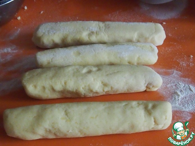 Вымесить тесто, разделить его на 4 части, сделать валики диаметром 4-5 см, длина их не должна превышать ширину вашей кастрюли. В широкой кастрюле закипятить воду, добавить соль и варить кнедлики 15-20 минут, как только они всплывут, значит, уже готовы. Кнедлики можно сделать в форме шариков, это удобнее, если нет большой широкой кастрюли.