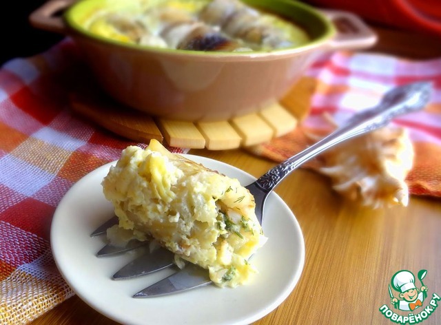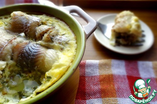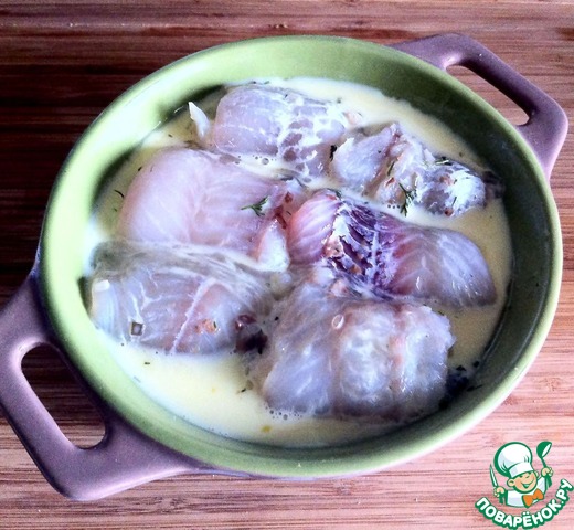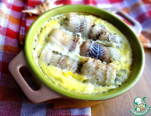 Яйца смешать с молоком и залить этой смесью рыбу.