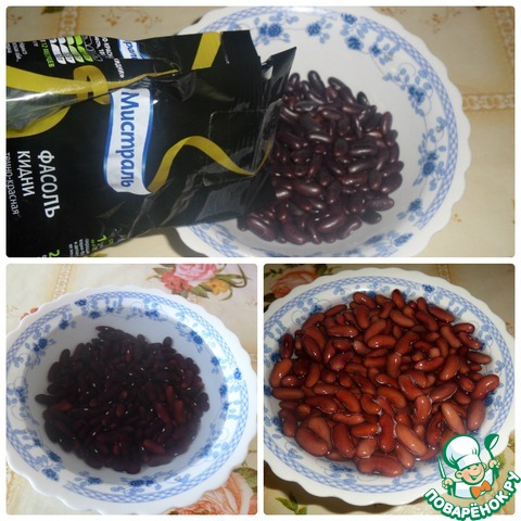 Отмеряем необходимое количество фасоли. Выкладываем в чашку, заливаем водой и оставляем на 4-6 часов ( лучше и удобнее сделать это на ночь).