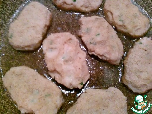 Тщательно размешиваем "фарш". Мокрыми руками формируем котлетки, обваливаем их в панировочных сухарях и выкладываем в разогретую сковороду с маслом. Обжариваем с обеих сторон до золотистой корочки.