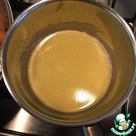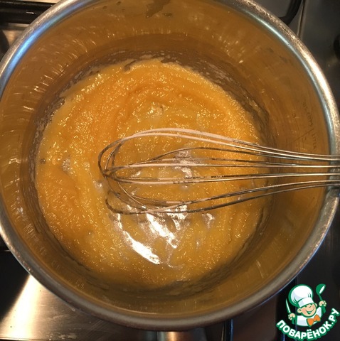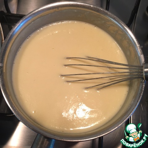 Постоянно мешая венчиком, добавляем 1 ст. ложку с горкой муки.