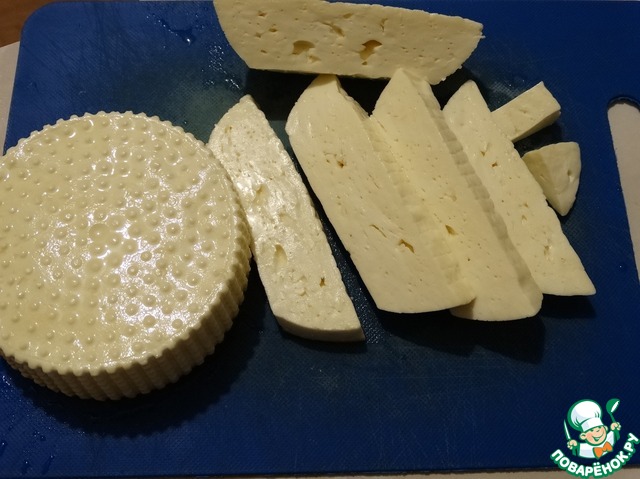 Сверху выкладываем домашний сыр кусочками.