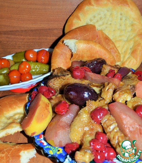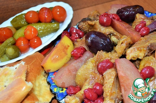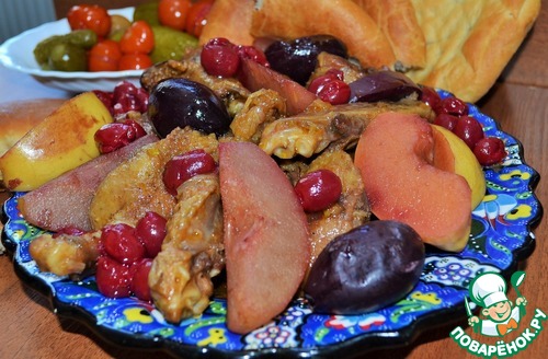| ВОТ ТАК... Вообще то по рецепту нужны бараньи голяшки, но рецепт очень понравился и заинтересовал, и мысли "КОГДА ЖЕ Я КУПЛЮ ЭТИ ГОЛЯШКИ" не давали покоя, я и решила заменить их утиным мясом, УТКА и ФРУКТЫ - очень хорошее сочетание, еще никто не разочаровывался. |
