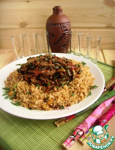 | Рис с яйцом –настоящий шедевр китайской кухни. Абсолютно простое и минималистическое блюдо, но очень вкусное и идеально в качестве гарнира к чему угодно. Я люблю добавлять в рис с яйцом зеленый лук и паприку, и яйца стараюсь брать с оранжевыми желтками – мне нравятся яркие вкрапления. А в качестве дополнения к рису предлагаю приготовить быстрое и сочное куриное филе, с хрустящими овощами, сдобренное острым перцем и чесноком. Все это великолепие готовится за время, пока обсыхает рис. Быстро, просто, вкусно, необычно! Что еще нужно, чтобы удивить и угостить хорошую компанию?! |