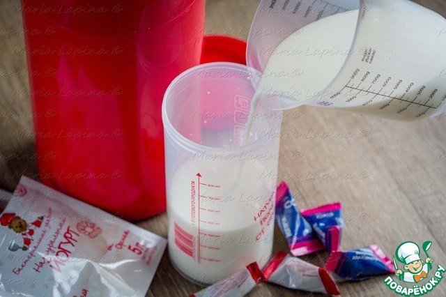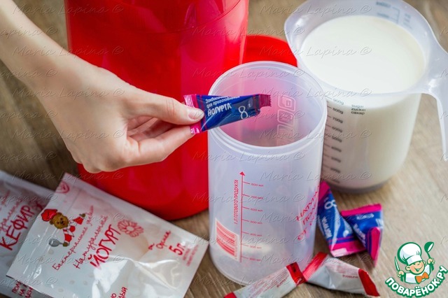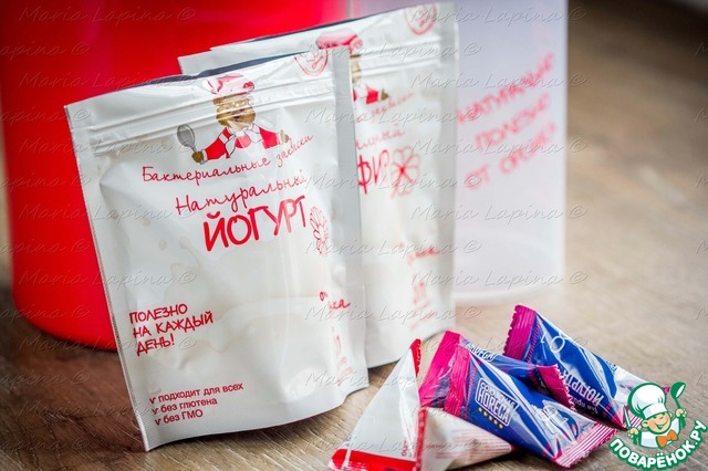 Итак, начнем приготовление домашнего йогурта. Он делается очень просто и требует минимум усилий, а получается невероятно вкусным. Ни за что не сравнится с покупным. Я использую закваски от фирмы "Oursson". Они очень удобно упакованы, закваска уже отмерена заботливым производителем ровно на литр.
