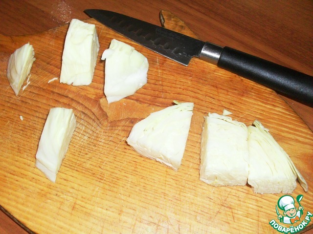 А еще я порезала небольшими кусочками капусту и морковку. Так же обмакивала в кляр и жарила вместе с голенью.