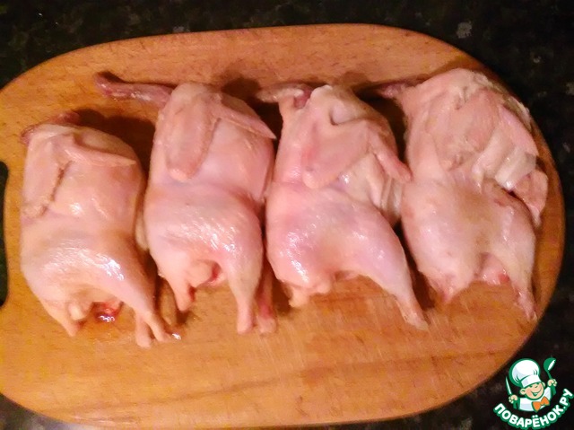 | Вот такое вот вкусное блюдо предлагаю вашему вниманию. Мясо перепелок в комплексе с запеченным молодым картофелем. Чеснок и острый перец придают пикантность... Начнем... |