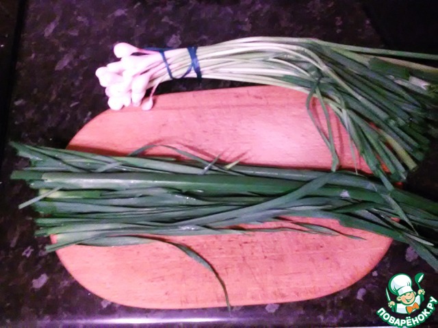 У молодого чеснока отрезаем только листья (остальной можем использовать в другое блюдо, либо съесть))).