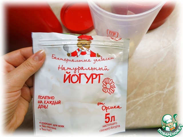 Для начала нужно приготовить йогурт. Я использовала для этого закваску ТМ "Oursson".