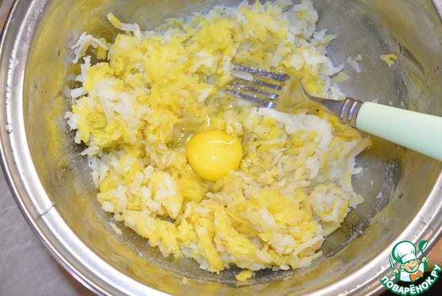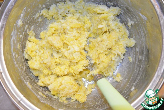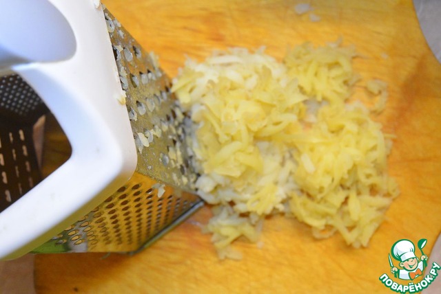 Картофель отварить, остудить, очистить и натереть на терке (лучше конечно на мелкой).