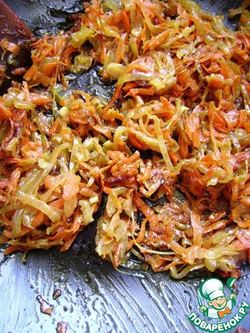 Биточки вынуть из духовки, покрыть луково-морковной смесью.