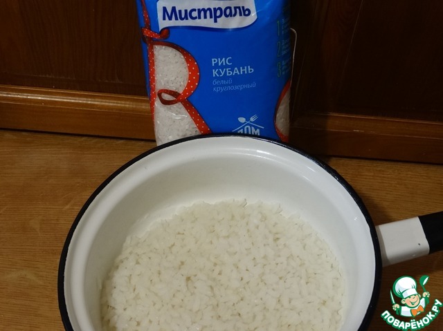 Чуть не забыла, на четвертой конфорке варится рис, который предварительно промыла и засыпала в подсоленную кипящую воду. Варим почти до готовности при минимальном кипении, не накрывая крышкой. Затем воду сливаем.