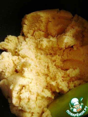 Пока готовится рулет, нужно сварить поленту. К сожалению, мой любимый Мистраль пока еще не выпускает свою поленту, поэтому варим, что найдем. У меня полента быстроваркая, я засыпала ее в подсоленный кипяток и варила всего пару минут, помешивая. Затем заправила сливочным маслом и тертым сыром, хорошо перемешала и выложила на стеклянную доску слоем в пару сантиметров. Выемкой для теста нарезала кружочки и выложила на большое блюдо.