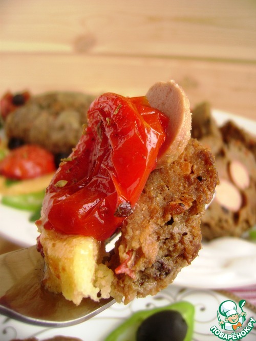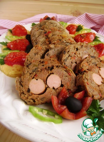| Блюда из фарша всегда любимы, выручают, когда спешишь, и вполне могут быть поданы на праздничный стол. Например, если приготовить такой вот рулет, с овощным соффритто, с сосисками, с пряностями. И подать его с полентой с сыром и запеченными с травами помидорами. Так немножко по-итальянски, не буднично и неплохо для компании голодных друзей! Если останется - будет отличная холодная закуска или ломтик на бутерброд. |