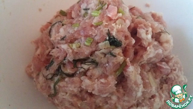 Свиной фарш посолить, поперчить добавить обжаренный лук и приправу "Прованские травы".