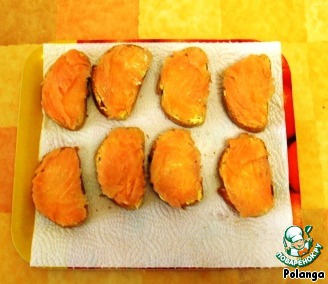 Французский батон нарезать ломтиками и слегка подсушить в тостере.