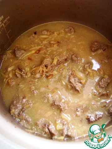 Залить мясо кипятком, чтобы оно было покрыто. Тушить до мягкости, изредка помешивая.