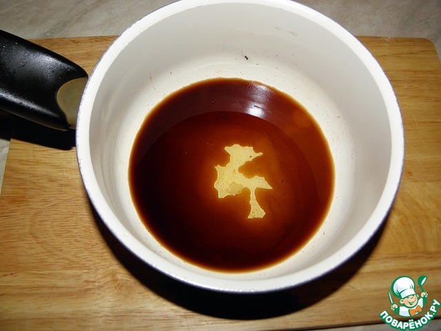 Влить подготовленный соус-глазурь, и прогреть на сильном огне, постоянно мешая.