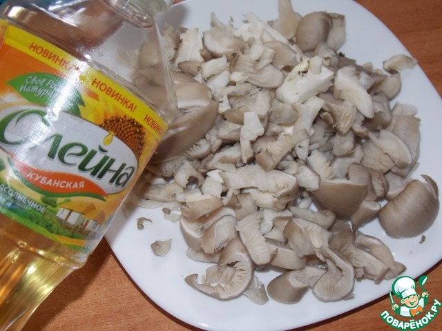 Грибы нарезать. Обжарить лук и грибы до готовности.