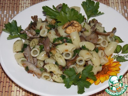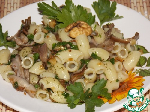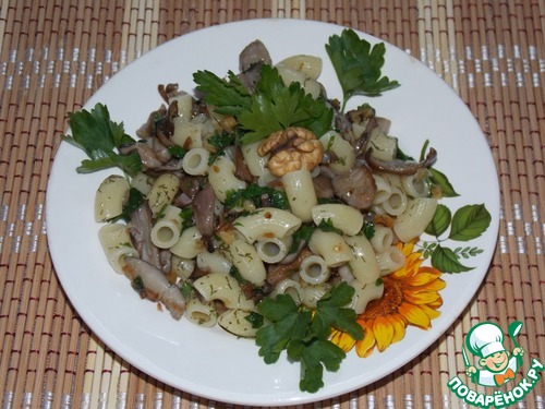 К готовым грибам добавить орехи и петрушку, прогреть 1 минуту.