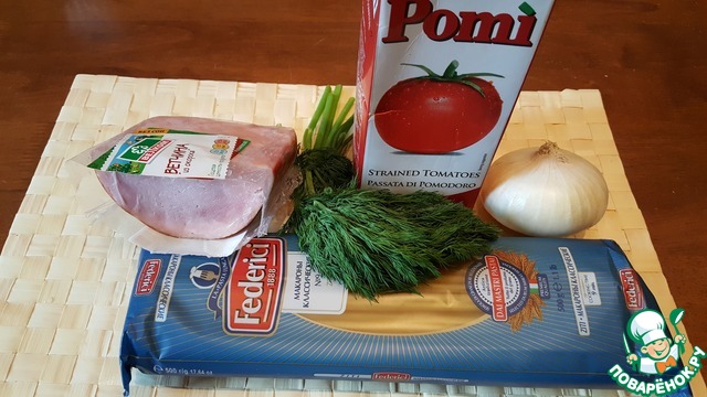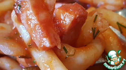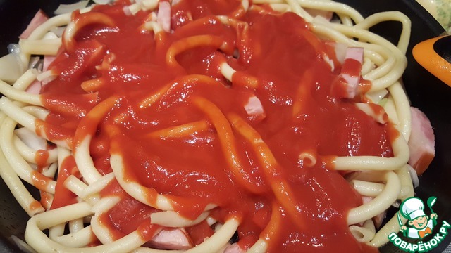 Спагетти с ветчиной и томатным соусом