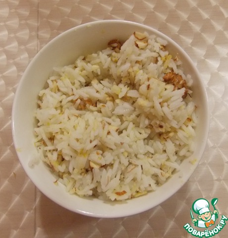 В рис добавить куркуму и рубленый миндаль, посолить.