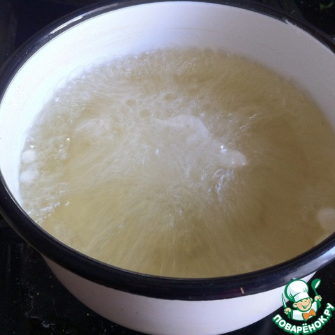 Сделать кляр из газированной воды, крахмала и муки. Пока его отставить в сторону.