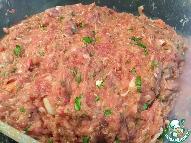 Из индейки и телятины приготовьте фарш. Смешайте.