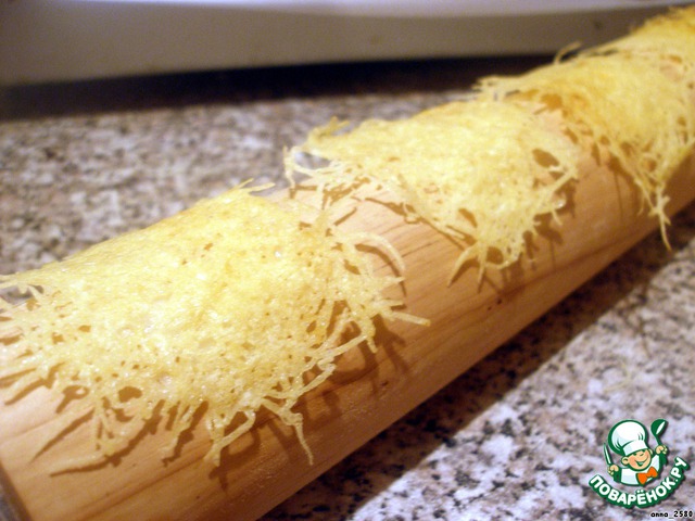 Аккуратно снять чипсы со сковороды и быстро переложить на скалку.