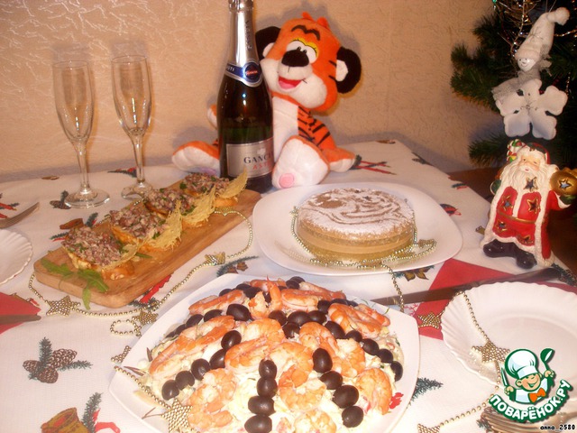 | Тигры, конечно, мясоеды. И поэтому что-нибудь мясное обязательно должно быть на столе! Пусть это будет хотя бы небольшая закуска. Мне повезло - угостили заячьей печенкой. Именно она и послужила основой для "тигриной радости"! На конкурс "Gorenje: новогодняя композиция". |