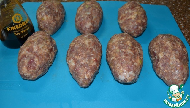 Обжаривать на горячей сковороде на растительном масле, по 3 минутки, на среднем огне. Затем выложить в сотейник или глубокую сковороду, влить соевый соус Киккоман натурально сваренный, процедить на сите масло - сок от котлет + 1-2 ст. л. кипятка, накрыть крышкой и протушить на медленном нагреве 5 минут.