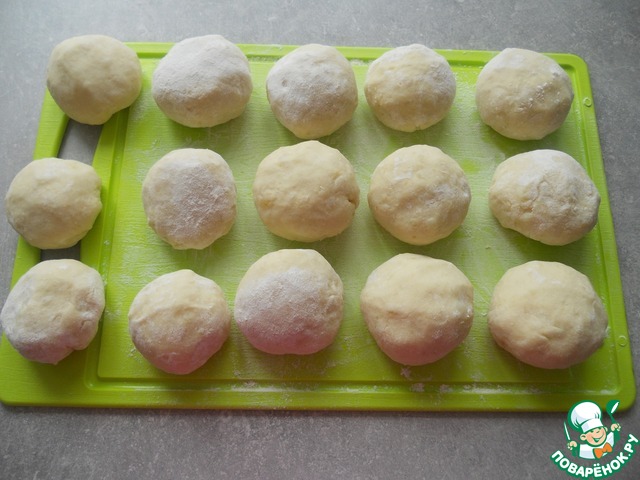 Рабочую поверхность припылить мукой. Тесто поделить на части.