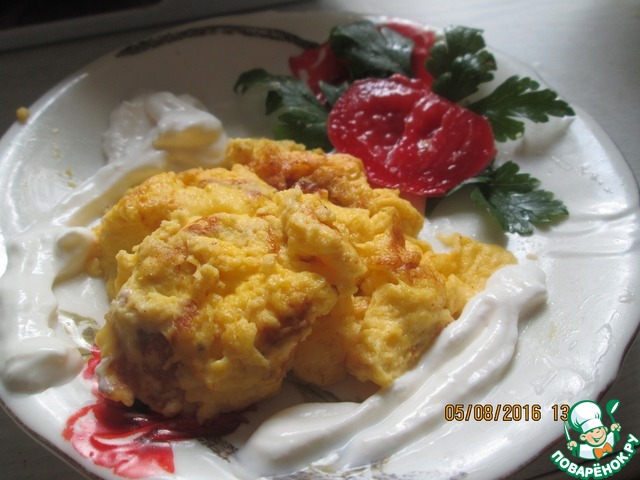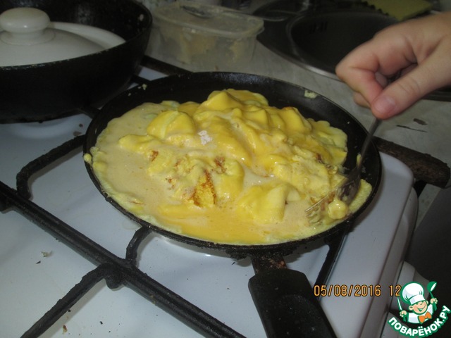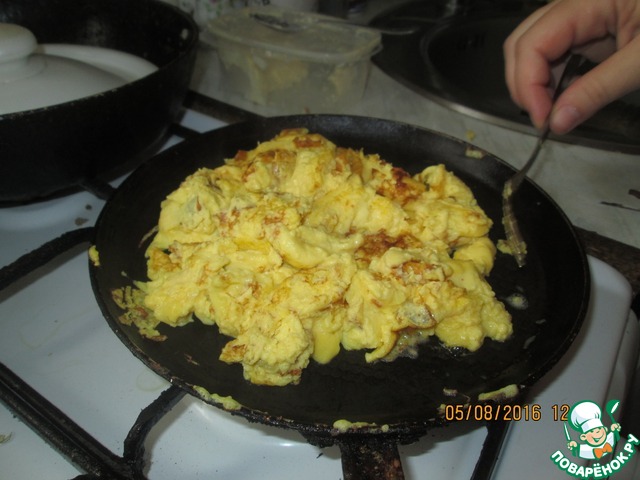Во время приготовления помешиваем наш омлет и прожариваем его со всех сторон.