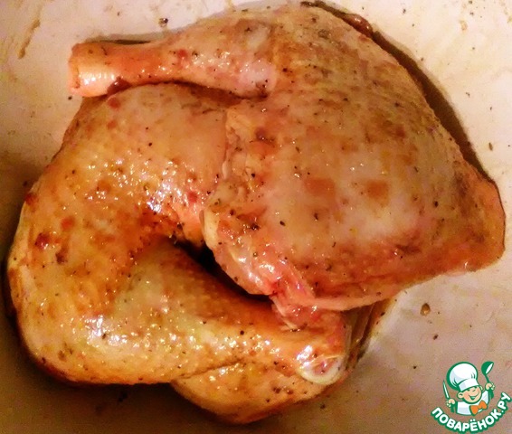 Хорошо обмажем каждый окорочок. Сложим в посуду с крышкой и оставим при комнатной температуре на 2-3 часа.