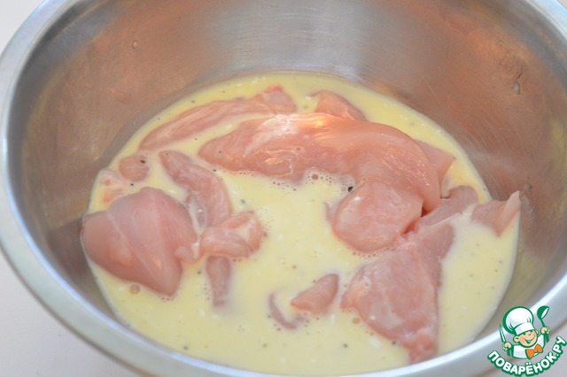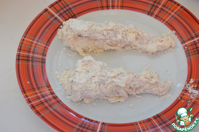 Запанируте кусочки курицы в этой мучной смеси